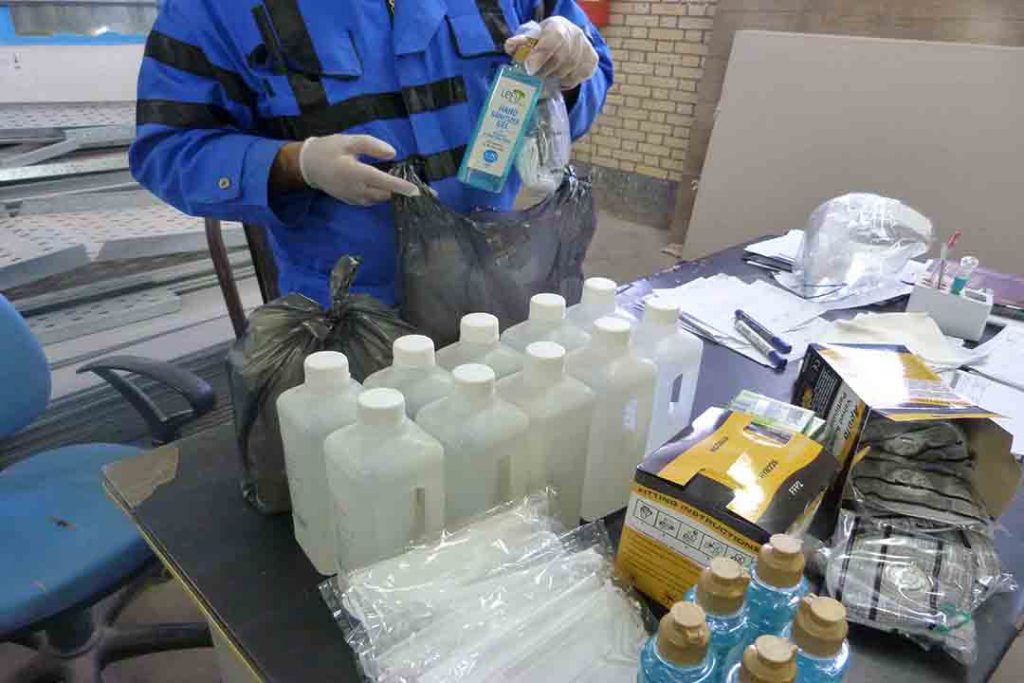 تحویل پک های بهداشتی ومواد ضدعفونی کننده دست ( الکل و ژل با محتوی اتانول ۷۰ درجه ) به صورت ماهانه برای پرسنل